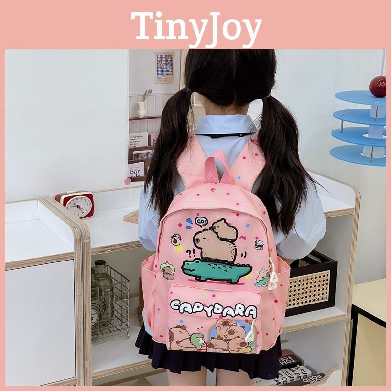 Cute Drinking Capybara Milk Tea Bcrocodile Fries Cartoon Pattern Backpack Kid