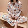 Women's Cartoon Pajama Set - Long Sleeve Shirt & Pants, Petite Students' Homewear for Spring & Autumn