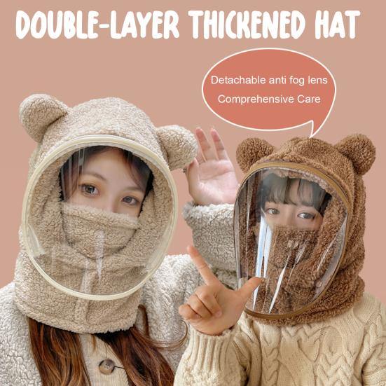 Children Hat with Soft Bear Ears Anti-Fog Lenses Fluffy Plush Windproof Detachable Lenses Cold-resistant Winter Hat
