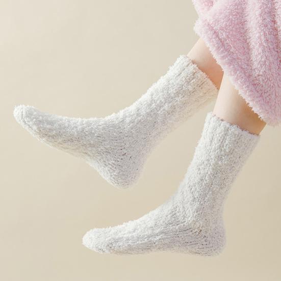 1 Pair Women Sleeping Socks Thickened Warm Fabric Coral Velvet Solid Color Socks Autumn Winter Daily Wear