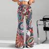 Women's Fashion Loose Drawstring Waist Retro Printed Casual Sports Pants Casual Flared Pants