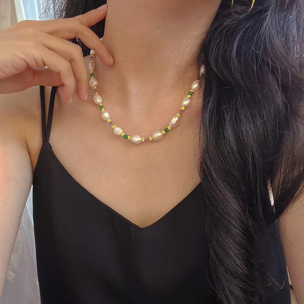 Vintage Natural Freshwater Baroque Pearl Natural Amethyst Chalcedony Clavicle Chain Necklace Female Atmosphere