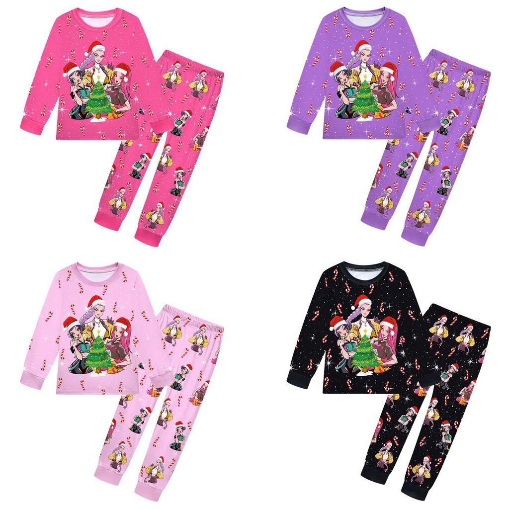 Kids Girls K-POP Rumi Zoey Mira Printed Casual Long Sleeves T-Shirt Pants Trousers Clothes Set