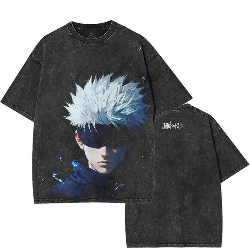 Gojo Satoru Print T-shirt Jujutsu Kaisen Anime Clothing Men Women Cotton Tshirts Vintage Washed Tee Harajuku Male Loose T Shirt