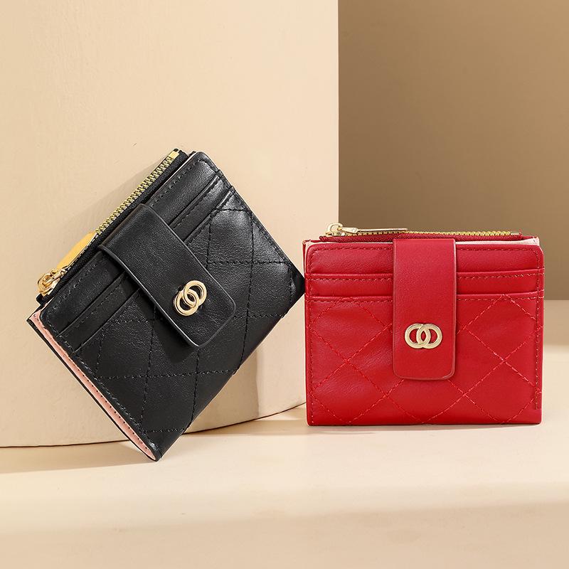 Korean Style Men's Diamond Lattice Zipper Wallet with Multi-Card Slots