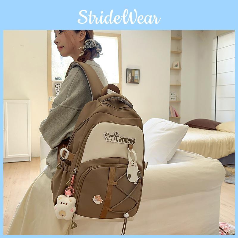 Blocked Color Fashionable Letter Cat Pattern Student Backpack With Pendant