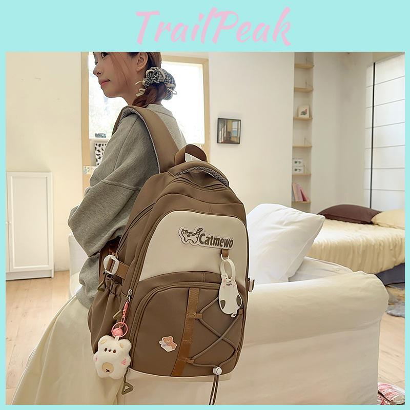 Color Blocked Fashionable Letter Cat Pattern Student Backpack Pendant With