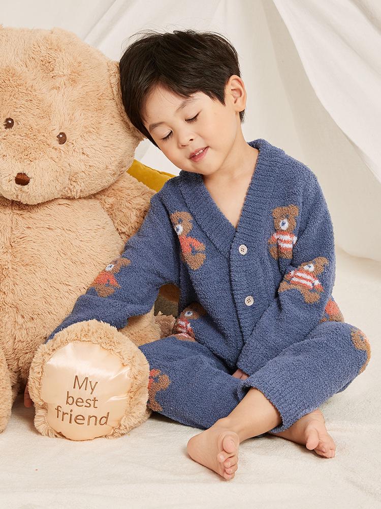 Lanweiliyang Boys' Fleece-Lined Velvet Pajamas - Cozy Autumn/Winter Set