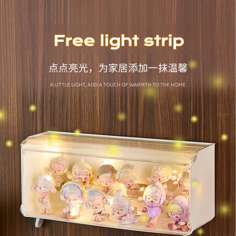 Wall Mounted Storage Box with Light for Action Figures Dustproof Stackable Display Rack Organizer for Blind Box Doll Storage Box