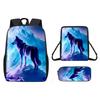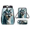 Pattern Animal Wolf Backpack Kids Shoulder Bag Pencil Case Student Use School