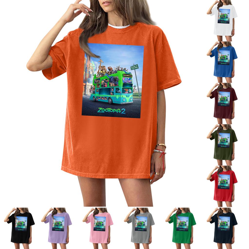 Women's Casual Fashion Round Neck Printed Short Sleeve T-Shirt Top