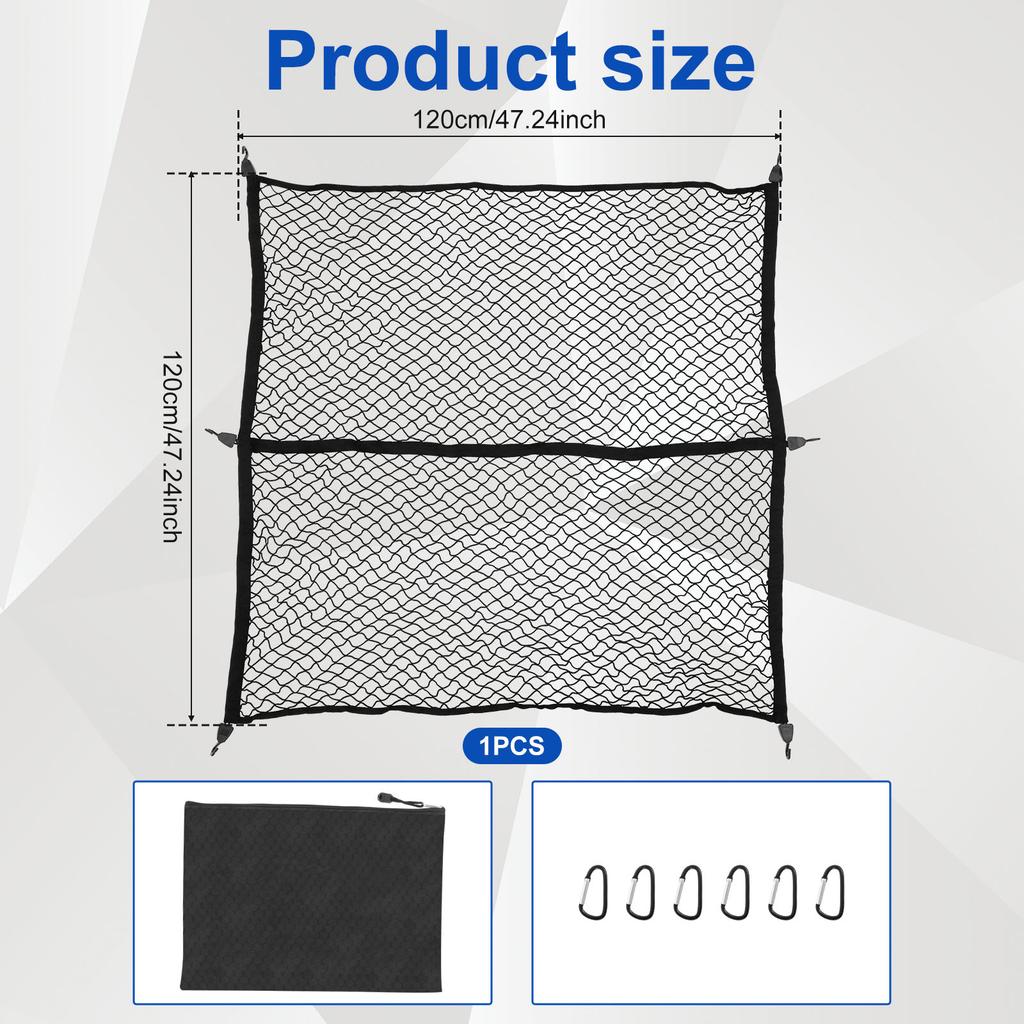 Truck Bed Cargo Net Highly Elastic Pickup Truck Bed Mesh Organizer Stretchable 4x4ft To 8x8ft Cargo Net with Carabiners & Hooks