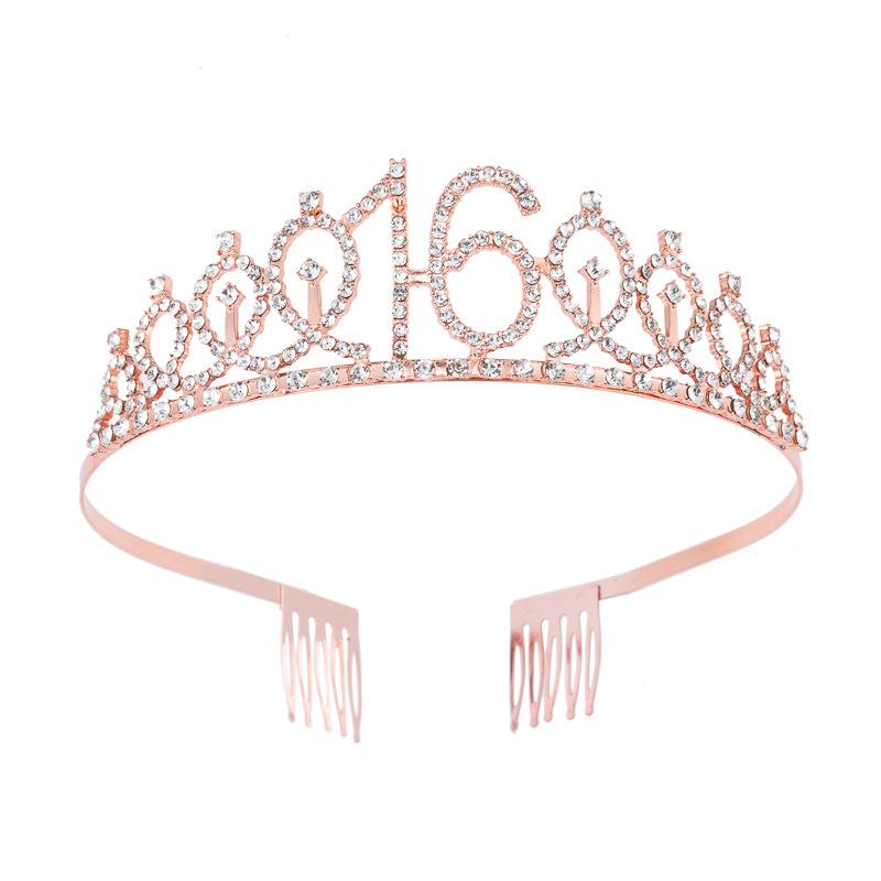Birthday Party Crown Headband Rhinestone Crown Hair Accessories First Year Number Birthday Cake Ornaments Alloy Headband