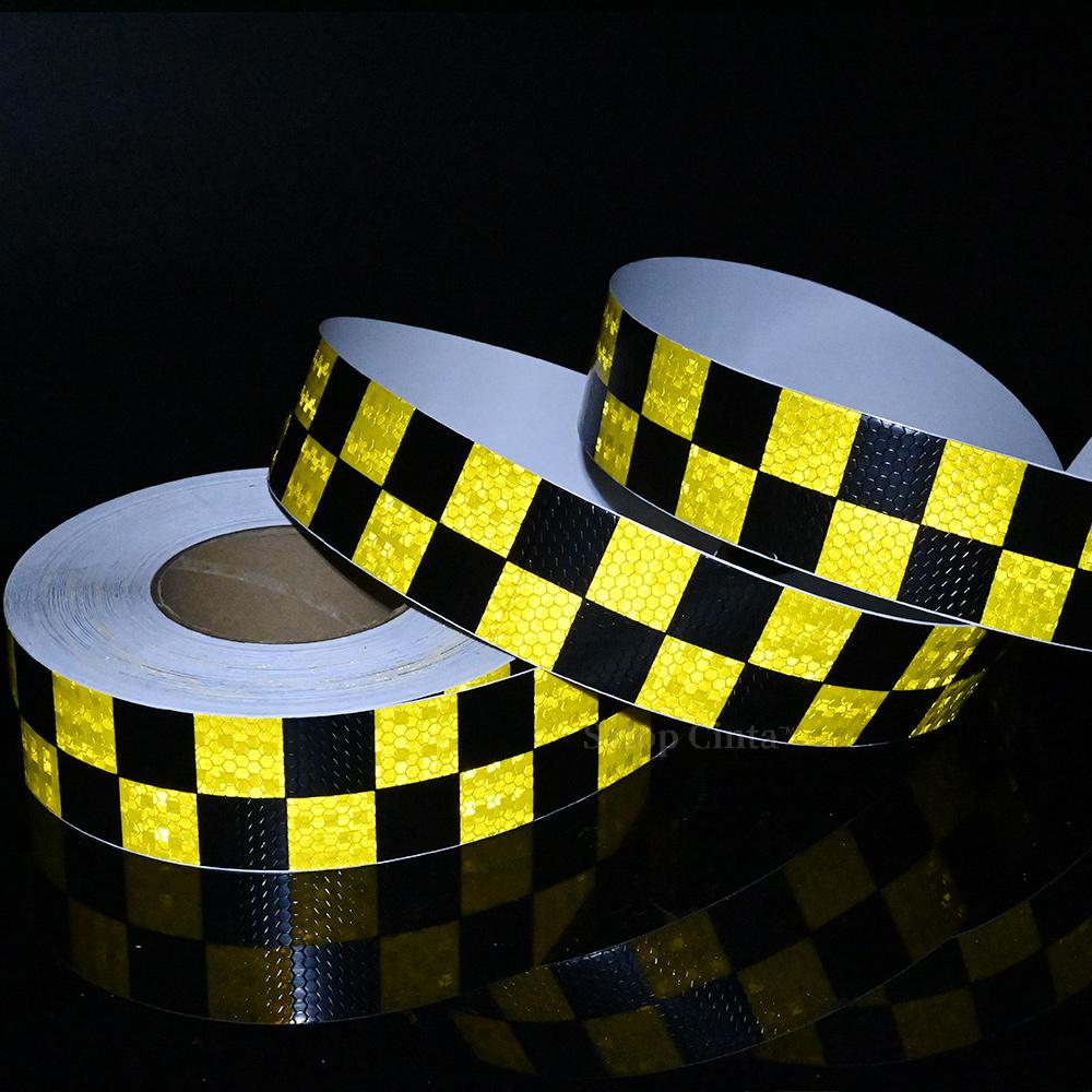 5cmx50m Checkered Reflective Sticker Yellow Black Traffic Safety Waterproof Warning Reflectors Adhesive Tape For Car Truck Trail