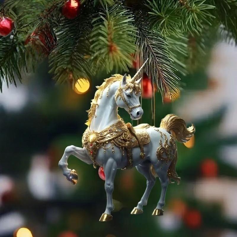 2D Acrylic Horse Car Rearview Mirror Pendant Charm Christmas Tree Backpack Hanging Ornament Party New Year Decoration Hanging