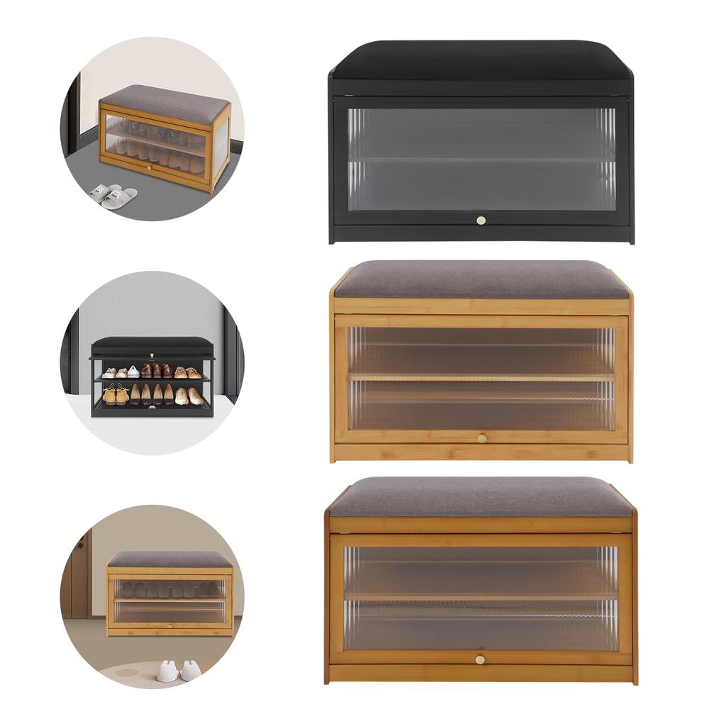 2-Tier Shoe Bench with Cushion, Sturdy Bamboo Shoe Storage Stool for Entryway, Hallway – Brown/Black/Log Color