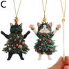 2D Christmas Tree Hanging Pendant Car Rearview Mirror Ornaments Acrylic Cat For Tree Decorations Party Supplies New Year Gifts