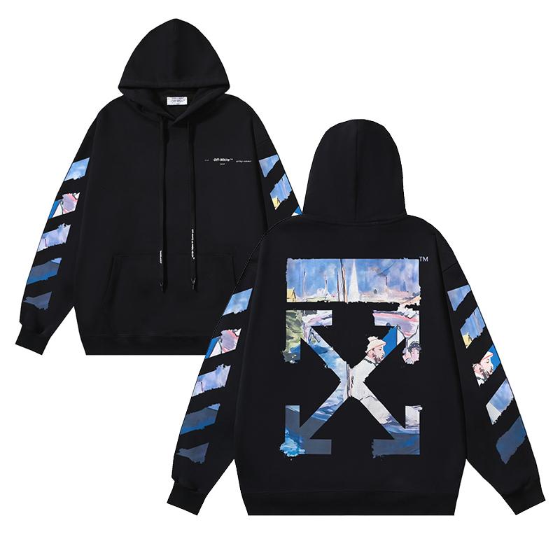 Off-White 2025 Autumn and Winter New OW Monet Oil Painting Arrow Print Men's and Women's Hooded Sweatshirt Sweatshirt