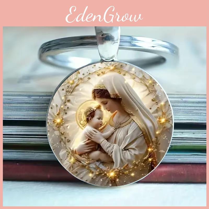 Blessed Virgin Mary Aluminum Round Keychain Gift For Religious Jewelry Collectors