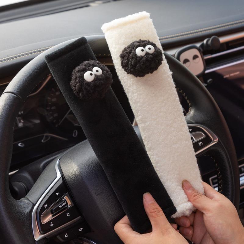 2pcs Black Spirit Pad Car Seat Belt Small Interior Decoration Protection Cartoon Creative Insurance Cover Car Accessories