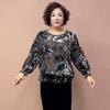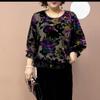 Spring and Autumn Women's Plus-Size Blouse Loose Fit Printed Silk Blouse Round Neck Floral Velvet Blouse