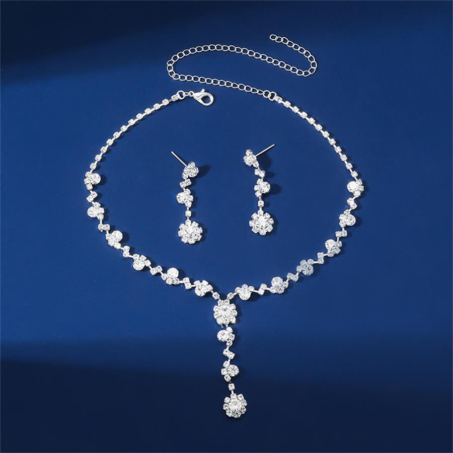 Korean Version of Super Flash Rhinestone Necklace Earrings, Full Diamond Necklace Dress Accessories