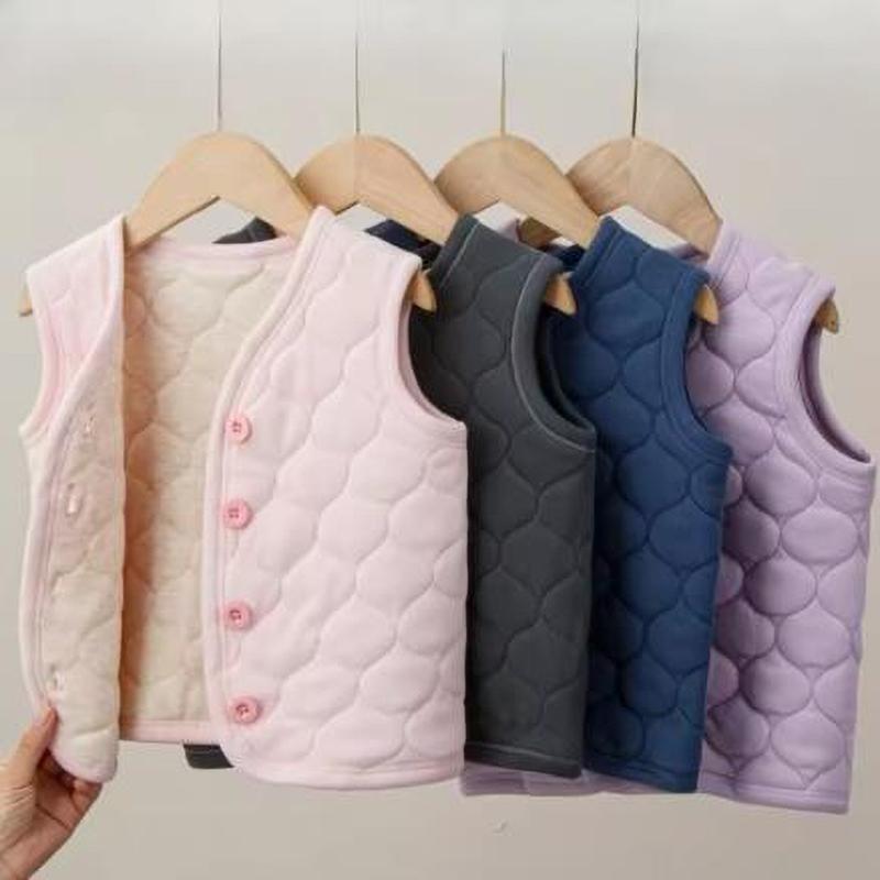 Children's Vest Autumn Winter Boys Girls Solid Color Thick Warm Cardigan Student Base Shirt Underwear Jacket Baby Clothing