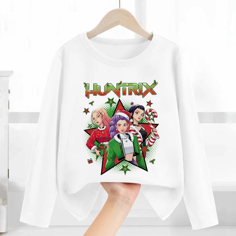 Merry Christmas Kpop Demon Hunters Print Fashion Kids T Shirt Casual Children Clothes Autumn Baby Boys Girls Long Sleeve T-shirt