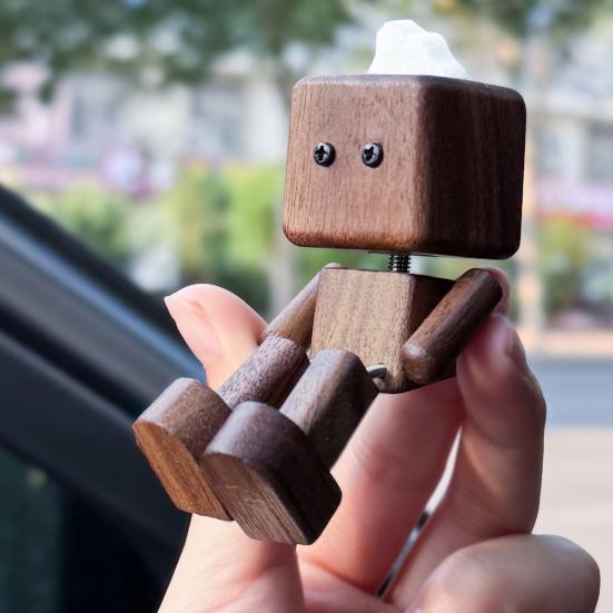 Yousheng Wooden Man Figurine Handmade Wood Doll with Swing Feet Car Aromatherapy Ornament Wooden Art Piece Auto Decor