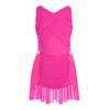 Girls Lyrical Dance Dress Cross Mesh Overlay Cutout Back Design Shiny Rhinestones Irregular Hem Figure Skating Gown