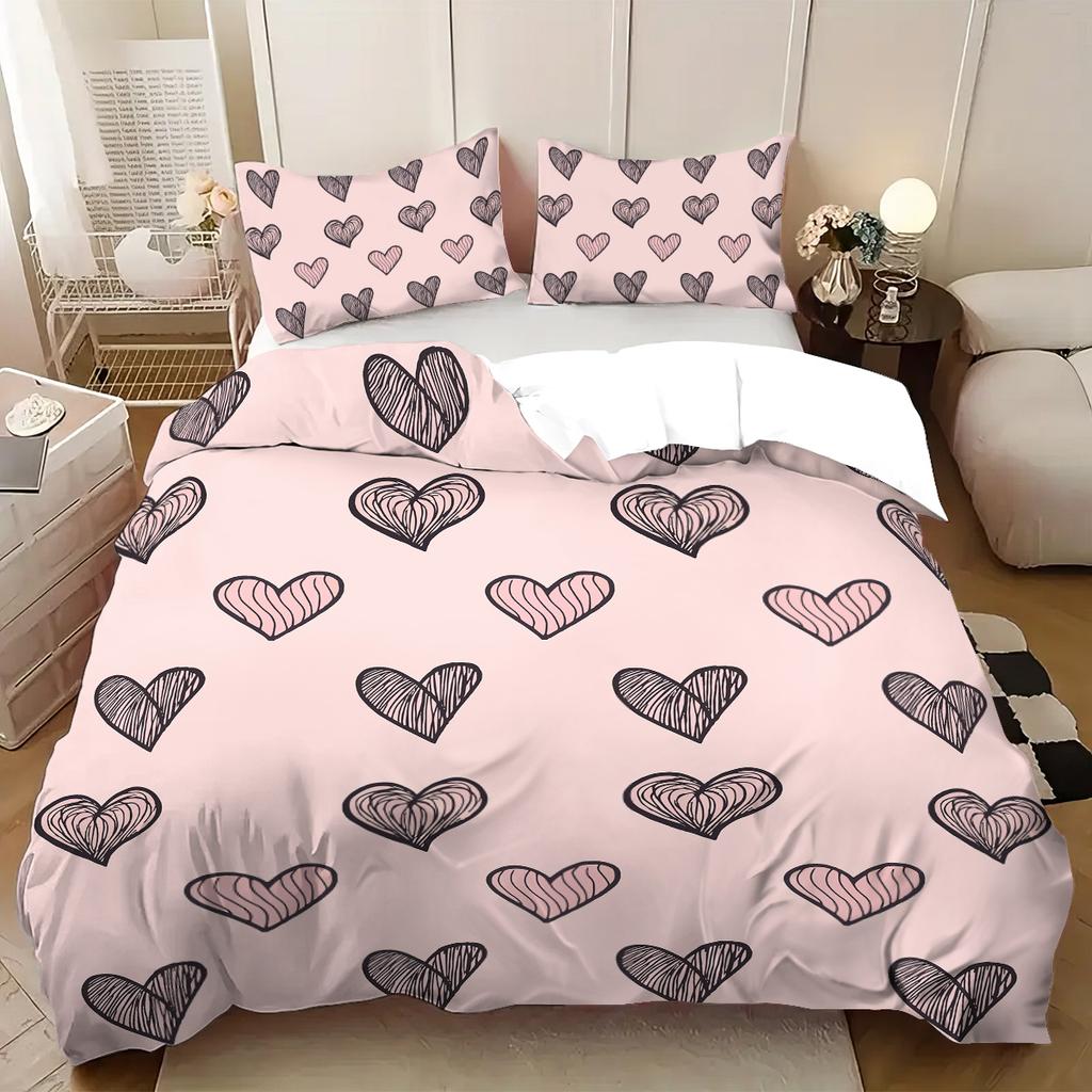3pcs Pink Love Printed Coreless Product Set for Bedrooms, Dormitories, Multiple Sizes, Soft and Comfortable, Machine Washable