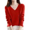 Women's Loose-Fit Knitted Base Layer Sweater V-Neck Pullover Long Sleeves Solid Colour