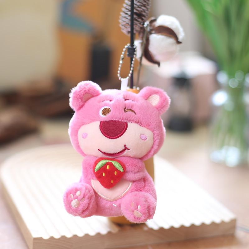 Adorable Pink Strawberry Bear Plush Keychain Soft And Cute Toy For Bag Or Purse Decoration