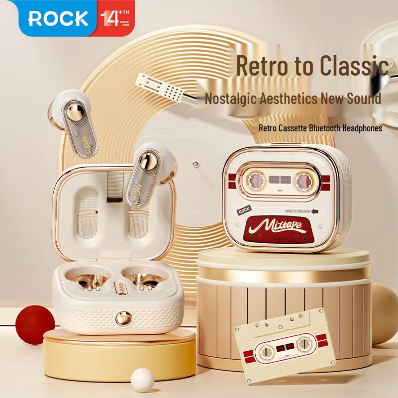ROCK RAU0774 Retro Cassette Half-In-Ear TWS Bluetooth Earbuds
