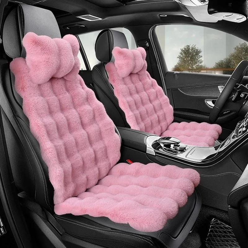 Automobile Seat Covers 3 Piece Winter Set Bubble Velvet Car Seat Cushion Soft Synthetic Wool Warmth Cold Weather