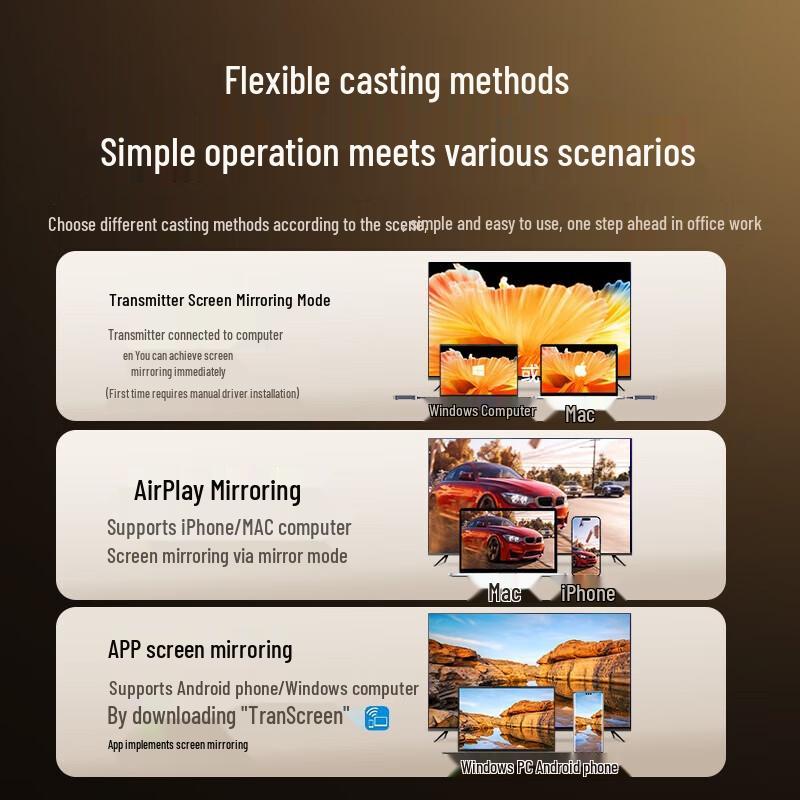 Wireless High-speed Transmitter & Receiver 4K/1080P 60Hz Dual-Mode Screen Mirroring Extender for Laptop PC