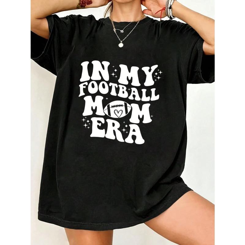 Oversized T Shirt Black In My Football Mom Era Print Graphic Tee For Casual Wear And Sports Events