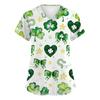 Women's Fashion Short-Sleeve Sleeve St. Patrick's Day Print V-Neck Pocket Workwear Top