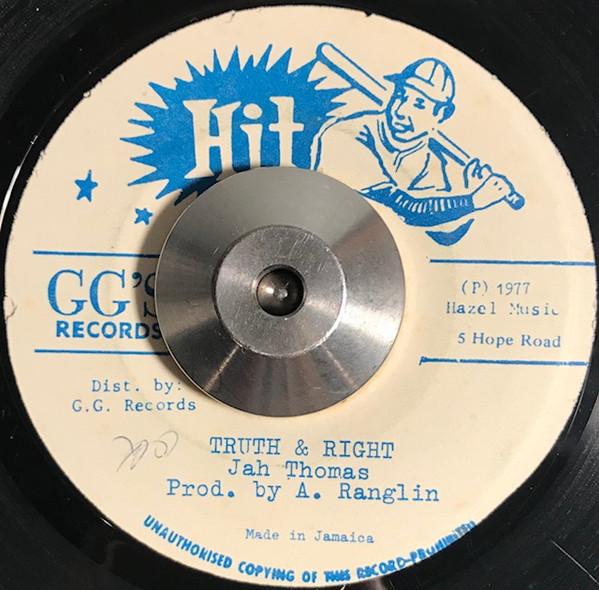 7inch Record JAH THOMAS Truth Right NONE Hit 1977 Jamaica Reggae Ska Dub Used