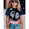 Fun Cat Girl T-shirt Summer Cartoon Pattern Girl Short Sleeve T-shirt Casual Round Neck Top Animal Children's Clothing Girl Clothing