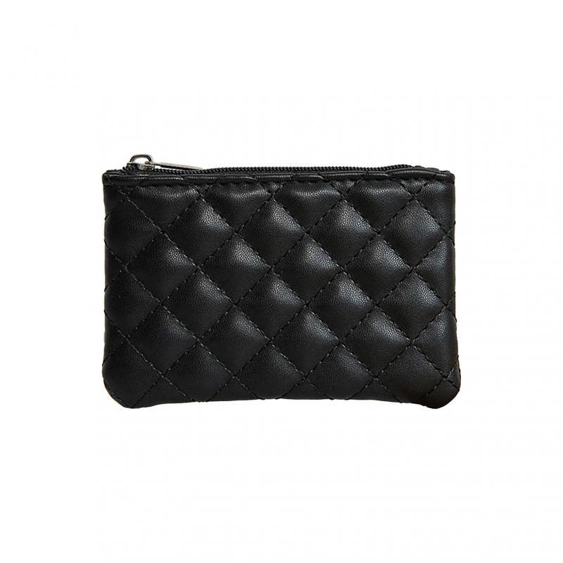 Women Coin Purse Solid Color Faux Leather Rhombus Texture Zipper Closure Blong Shape Large Capacity Portable Lightweight Firm Stitching