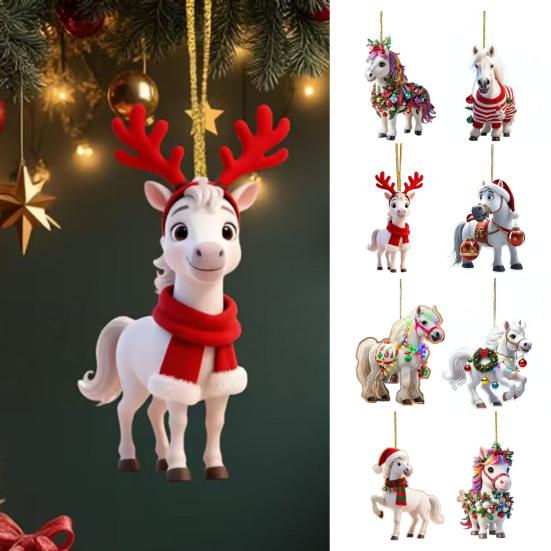 Christmas Pony Ornament 2D Acrylic Hanging Decor for Car And Tree Cute Horse Design Holiday Gift for Kids