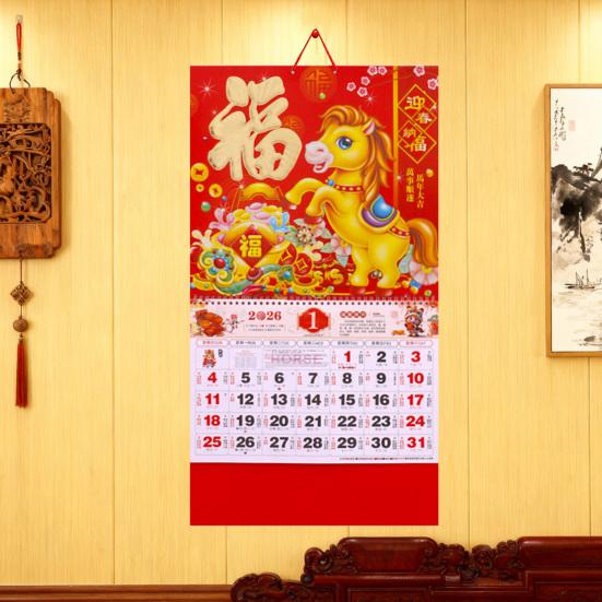2026 Chinese New Year Zodiac Calendar The Year of Horse Wall Hanging Calendar Traditional Lunar Monthly Calendar for Home Restaurant Office Wall Decor