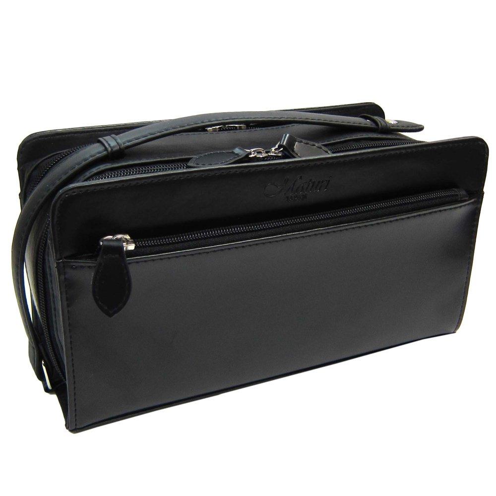Maturi Cordovan Horse Leather Double Zipper Second Bag, Black, MT-14