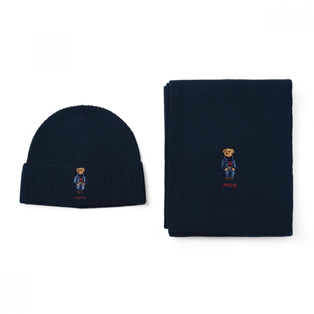 Polo Ralph Lauren Pc1044 433 Solid Denim Bear Gift Set Beanie Muffler