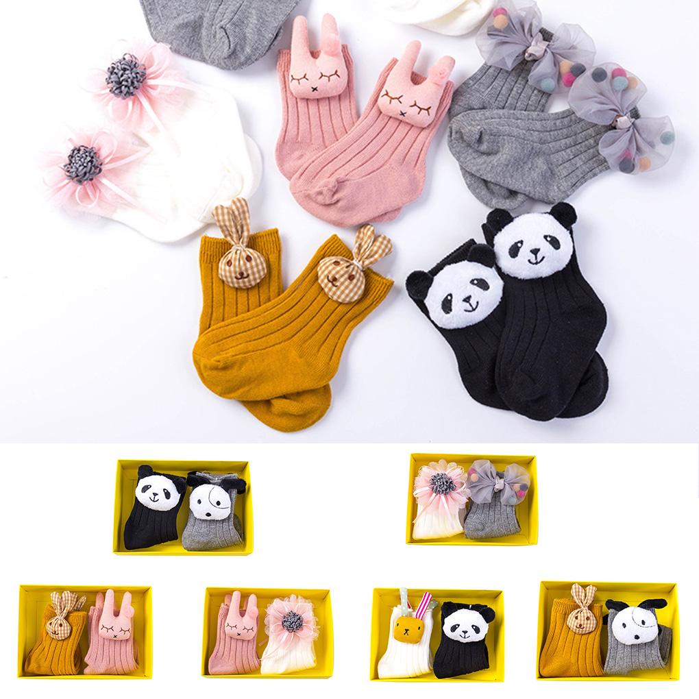 2 Pair Cotton Infant Socks Baby Girls High Knee High Knee Long Knitted Socks Cartoon Animal Newborns Toddlers Leg Warmers