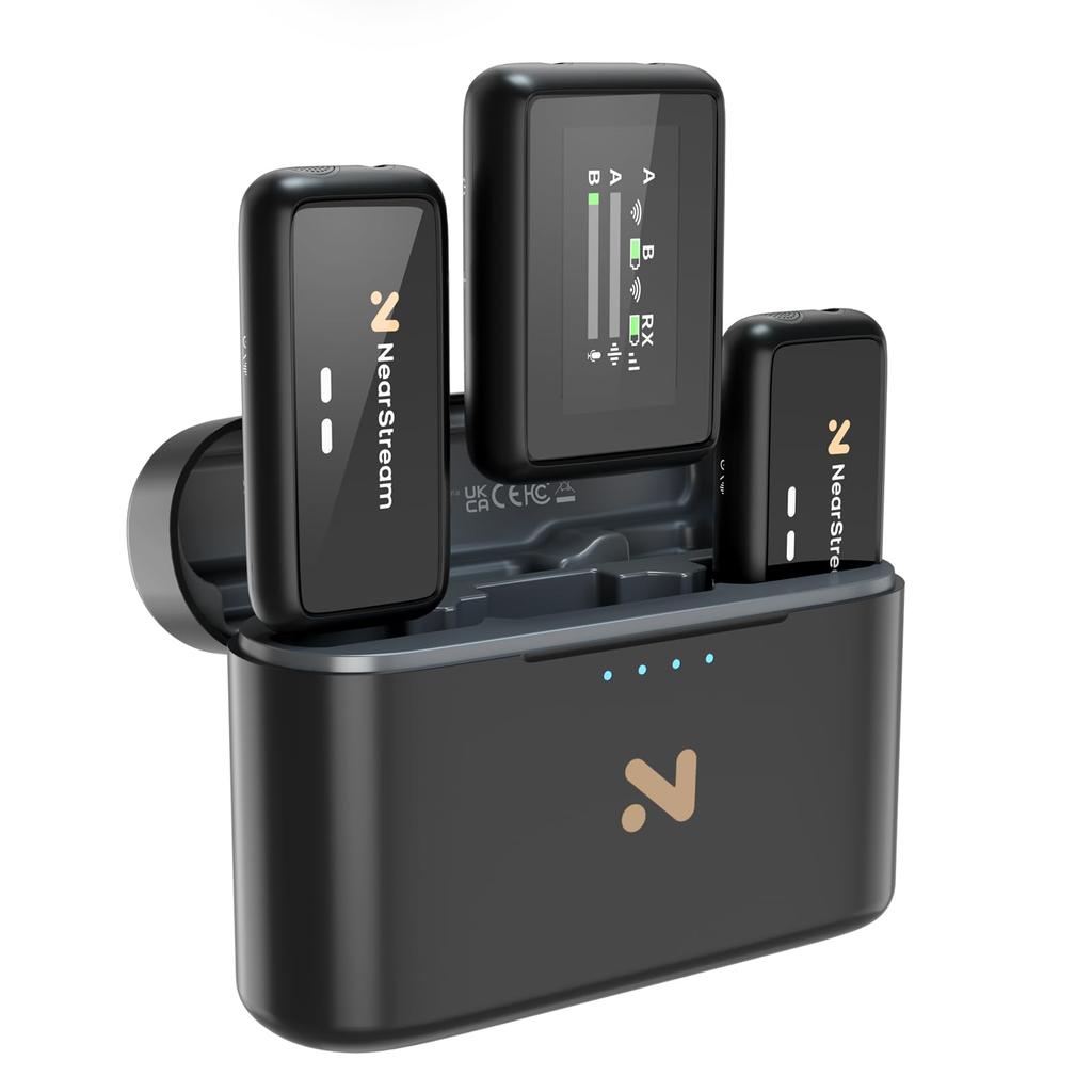 NearStream Wireless Lavalier Compact and 200M Wireless Up To 20 Hours of Certified Technical Standards External Noise Transmitters 1 Receiver Charging