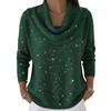 Women Tops Swing Collar Long Sleeve Shiny Rhinestones Pullover Tops Loose Fit Solid Color Flash