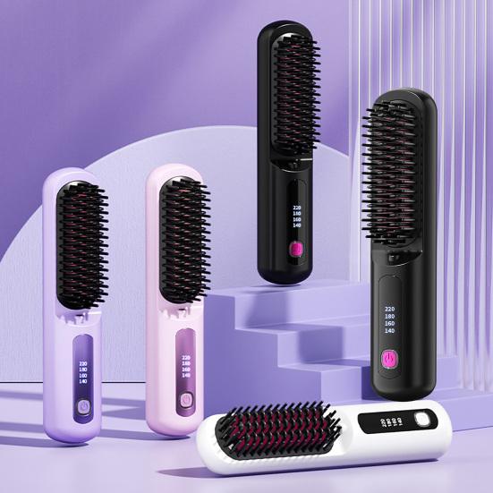 Cordless Hair Straightener Brush with 3 Temperature Settings Portable Mini Hair Straightening Comb Rechargeable Fast