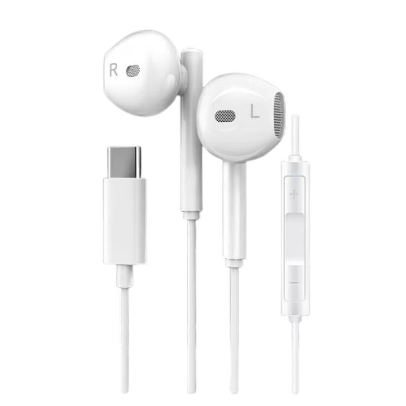 Wired Call With Noise Adjustable Uses Compatible with White Type-C Earphones, Earphones, Type-C, Compatible, Microphone, Reduction, Volume, Type-C